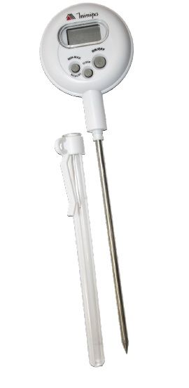 Utilizado para medidas de temperatura de alimentos. Possuindo sensor de aço inoxidável, pode ser utilizado para medir a temperatura de cozimento e temperatura de assados sendo aplicável para vários campos como: refrigeração, aquecimento, processamento de alimentos, processamento de borracha e plástico.